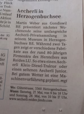 Die Aecherli Maschinen sind für mich nicht nur ein Hobby sonder meine Grosse Leidenschaft.